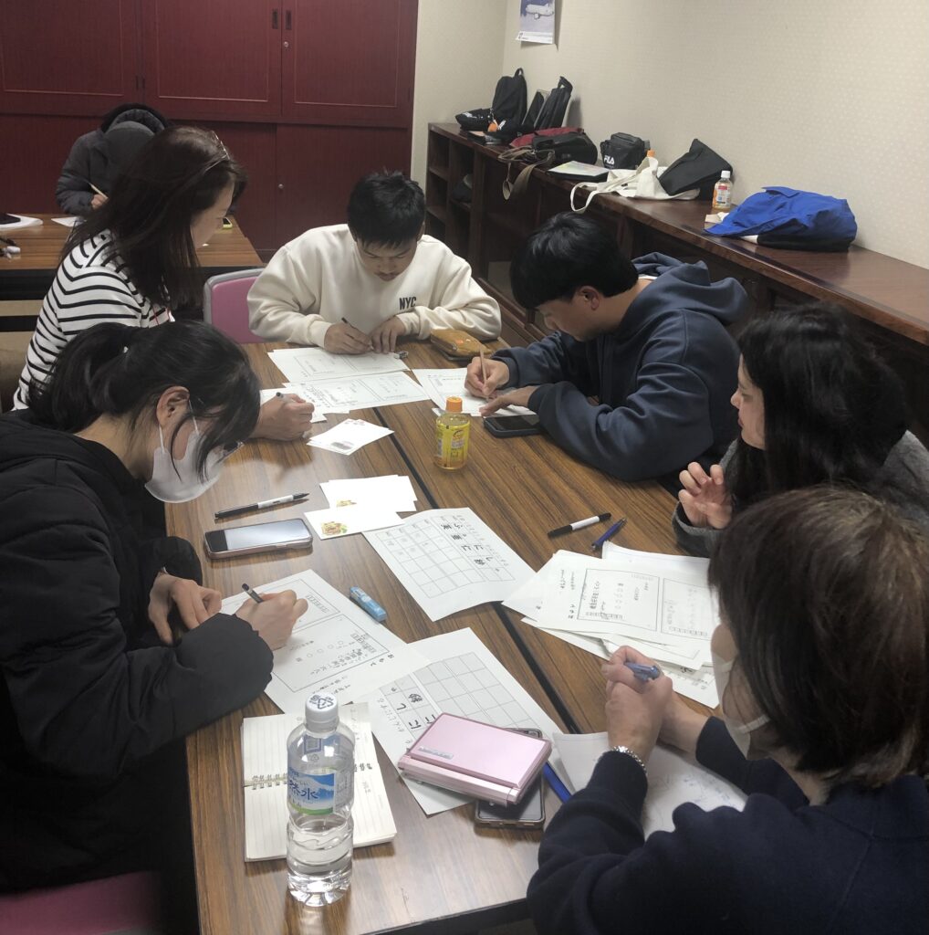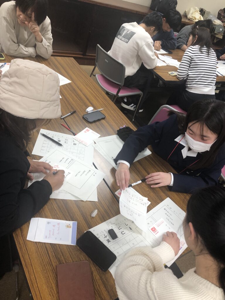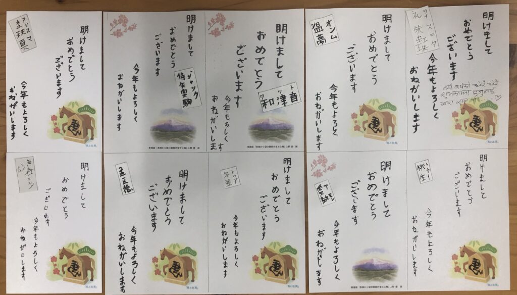 毎週水・金曜日の夜におおるりで開催している日本語講座。今日は年賀状づくり!外国籍の自分の名前を、漢字に当てはめて名前を作りました。
