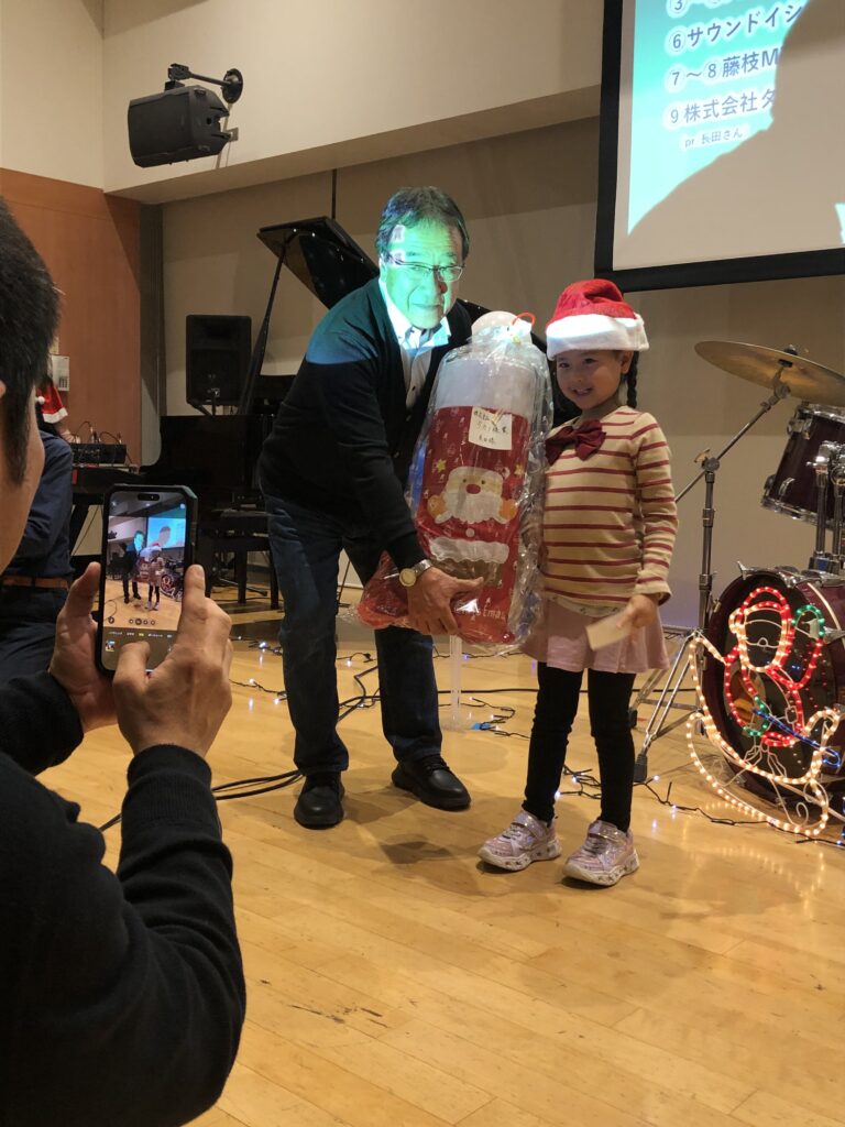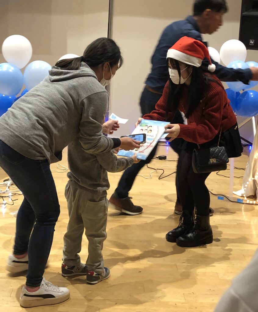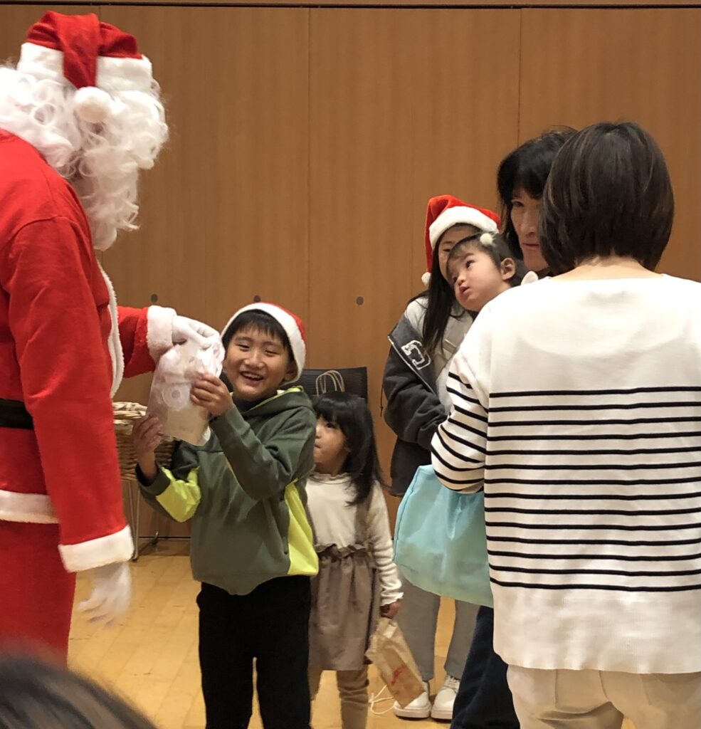 サービス満点のサンタクロース🎅が登場!お子さん達は、ツリーの下でプレゼントを受け取り満面の笑み☺ サンドウィッチやケーキ🎂でまた、にっこり☺