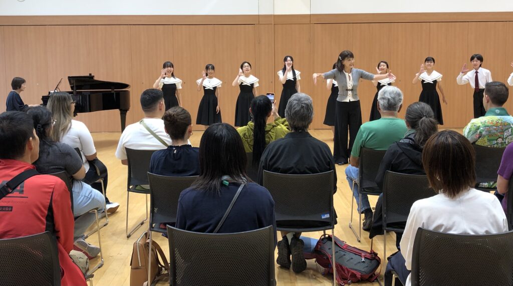 みんくるで、カナリヤ合唱団による歓迎の歌を鑑賞したり