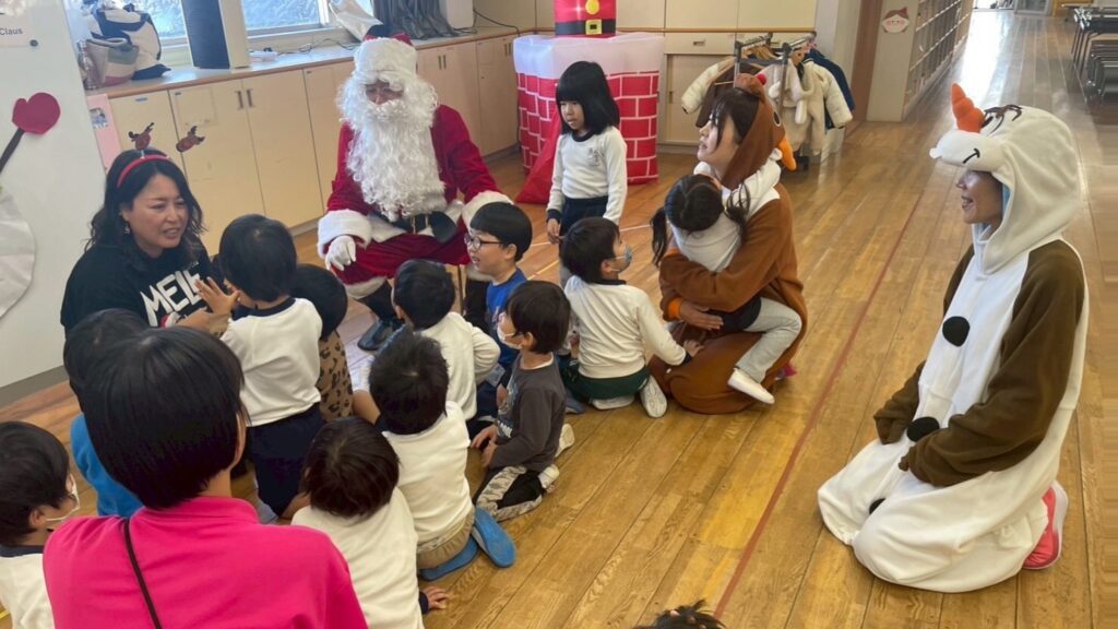 サンタクロース🎅の登場に、園児たちは目をキラキラ✨と輝かせ、大きな歓声が上がりました♫