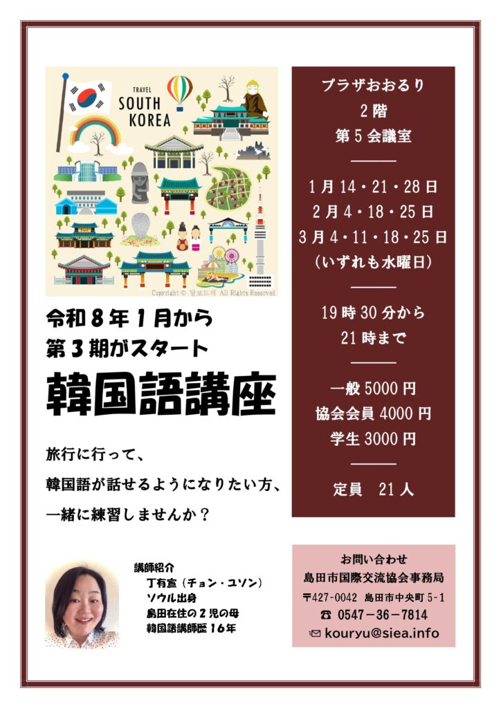 令和8年1月から人気💕の韓国語、第3期がスタート。
